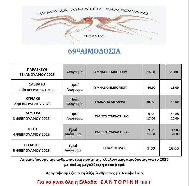 31 Γενάρη η εμβόλιμη χειμερινή αιμοδοσία της Τράπεζας Αίματος