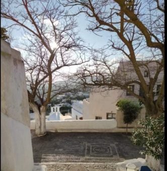Σε συνεννόηση με την Κοινότητα η Εστία μερίμνησε ώστε να πάρει την άδεια της Εφορείας Αρχαιοτήτων Κυκλάδων και με την επίβλεψή τους ανέθεσε στον κατάλληλο τεχνίτη, τον Μάρκο Δρόσο, να αποκαταστήσει με τον παραδοσιακό τρόπο τις ζημιές. Τον ευχαριστούμε πολύ γιατί το αποτέλεσμα είναι εντυπωσιακό και μας γεμίζει όλους χαρά και δύναμη για νέες παρεμβάσεις και δράσεις.