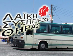 “Μετά την καλοκαιρινή μας παρέμβαση για τη μη εφαρμογή των εγκεκριμένων δρομολογίων από την ΚΤΕΛ ΘΗΡΑΣ ΑΕ και παρά τις αλλεπάλληλες καταγγελίες μας , μέχρι σήμερα δεν έχει ληφθεί κανένα ουσιαστικό μέτρο που να βελτιώνει την κατάσταση αλλά και να απονέμει ευθύνες.