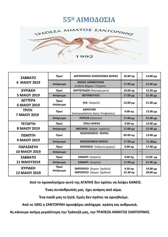 ΑΙΜΟΔΟΣΙΑ ΣΑΝΤΟΡΙΝΗΣ, ΑΡΙΘΜΟΣ 55. ΞΕΚΙΝΗΣΕ!