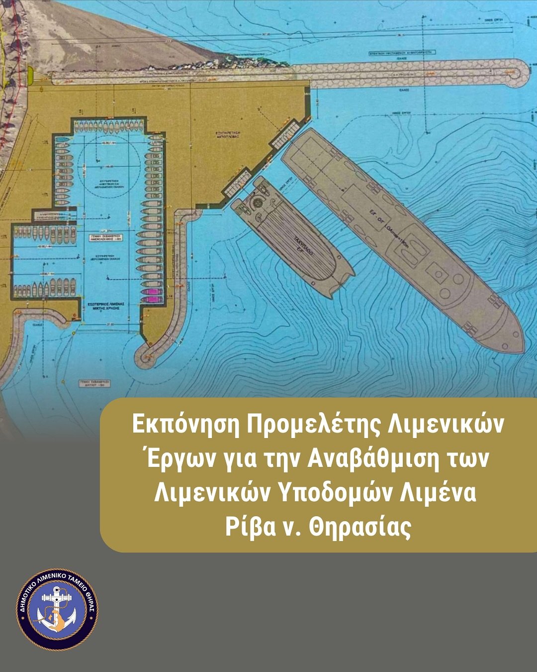 “Το Δημοτικό Λιμενικό Ταμείο Θήρας, γνωρίζοντας τα προβλήματα και τις δυσκολίες που αντιμετωπίζει η Θηρασιά, στην προσέγγιση και στην παραμονή πλοίων ακτοπλοΐας, σκαφών αλιείας και αναψυχής στην Ρίβα Θηρασίας , πήρε την πρωτοβουλία και ανέθεσε προμελέτη με ιδίους πόρους από το 2024, την οποία παρέλαβε ήδη με τίτλο:«Εκπόνηση Προμελέτης Λιμενικών Έργων για την Αναβάθμιση των Λιμενικών Υποδομών Λιμένα Ρίβα ν. Θηρασίας».