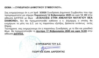 ΑΝΑΒΟΛΗ ΔΗΜΟΤΙΚΟΥ ΣΥΜΒΟΥΛΙΟΥ ΓΙΑ ΤΟ SEA DIAMOND