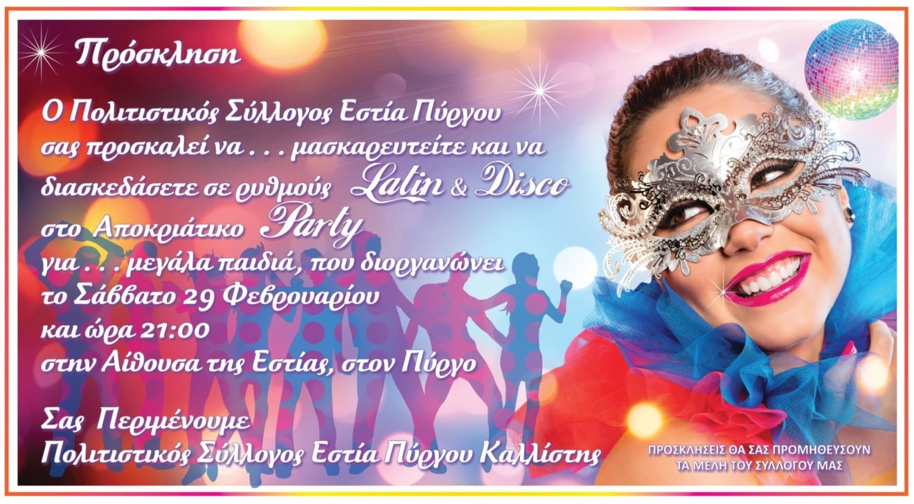 ΑΠΟΚΡΙΑΤΙΚΟ ΠΑΡΤΙ ΣΤΗΝ ΕΣΤΙΑ ΠΥΡΓΟΥ