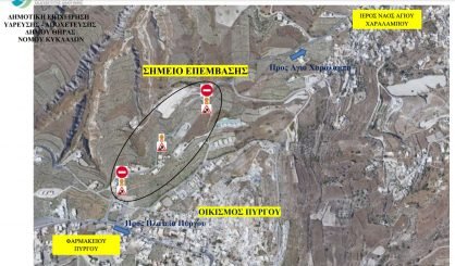 Κατά την διάρκεια των εργασιών η διέλευση των οχημάτων από το εν λόγω σημείο δεν θα επιτρέπεται καθ’ όλο το 24ωρο.