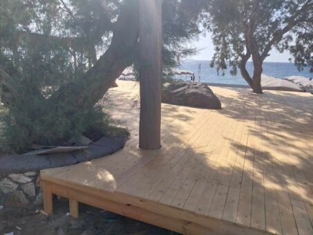 Με μεγάλη μας έκπληξη και απογοήτευση, φέτος, με την έναρξη της καλοκαιρινής σεζόν, είδαμε σε αυτό το μέχρι πρότινος ελεύθερο και όμορφο σημείο του παραλιακού δρόμου να έχουν τοποθετηθεί μόνιμες σιδηροκατασκευές που καλύπτουν τόσο το πεζοδρόμιο όσο και τμήμα του δρόμου και προεκτείνονται και στην παραλία. Είδαμε το πρωτοφανές οι πλατφόρμες να καλύπτουν ακόμα και τα ψηλά παρτέρια του πεζόδρομου με τις πεζούλες τους. Αυτό έχει ως αποτέλεσμα να έχει αλλάξει όλη η φυσιογνωμία της περιοχής, να έχει εξαφανιστεί η μέχρι πρότινος πλατεία και να μην υπάρχει πουθενά ελεύθερος χώρος που να μπορεί ο επισκέπτης να καθίσει.