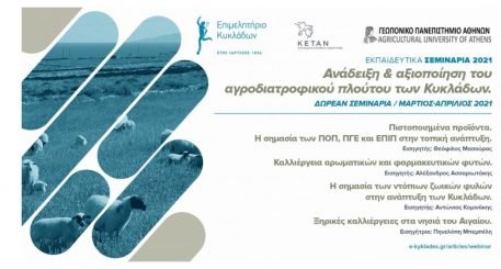 Το Επιμελητήριο Κυκλάδων, στο πλαίσιο της συνεργασίας του με το Γεωπονικό Πανεπιστήμιο Αθηνών ξεκινά την Παρασκευή 12 Μαρτίου 2021 νέο κύκλο επιμόρφωσης με θέμα «Ανάδειξη και αξιοποίηση του αγροδιατροφικού πλούτου των Κυκλάδων».