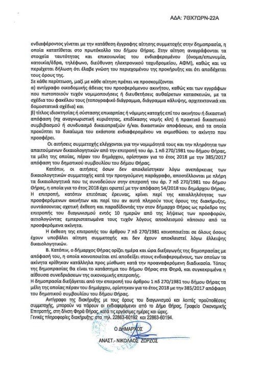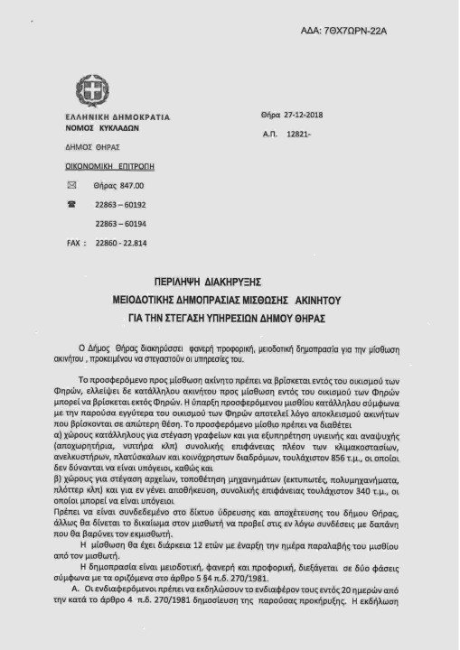 ΔΙΑΓΩΝΙΣΜΟΣ ΣΤΕΓΑΣΗΣ ΤΟΥ ΔΗΜΟΥ ΘΗΡΑΣ