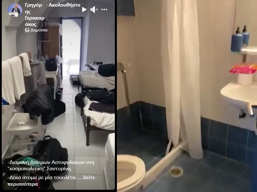 Ένα βίντεο που αναρτήθηκε στα μέσα κοινωνικής δικτύωσης, από τον Πρόεδρο της Πανελλήνια Ομοσπονδίας Αστυνομικών Υπαλλήλων κ. Παύλο Γερακαράκο, περιγράφει εύγλωττα μια ακόμα “άβολη” ιστορία. «Διαμονή δοκίμων αστυφυλάκων στην «κοσμοπολίτικη» Σαντορίνη. “Δέκα άτομα με μία τουαλέτα. Ακόμα και η ντροπή ντράπηκε. Οι υπεύθυνοι πότε;».