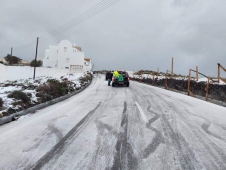 Τα συνεργεία του Δήμου συνεχίζουν να ρίχνουν αλάτι και να ενημερώνουν τους οδηγούς ιδιαίτερα στο δρόμο της Αγίας Ειρήνης και τον Πύργο.