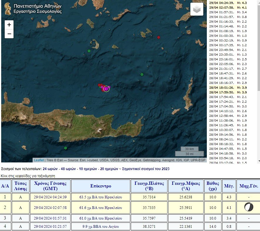 Δόνηση 4,3 Ρίχτερ μεταξύ Σαντορίνης και Κρήτης