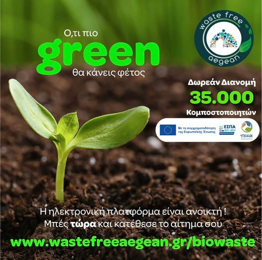 “Ο Φορέας Διαχείρισης Στερεών Αποβλήτων Νοτίου Αιγαίου (ΦοΔΣΑ) έχει ξεκινήσει μία περιβαλλοντική πρωτοβουλία, με τη δωρεάν παραχώρηση 35.000 οικιακών κομποστοποιητών για νοικοκυριά στην Περιφέρεια Νοτίου Αιγαίου.