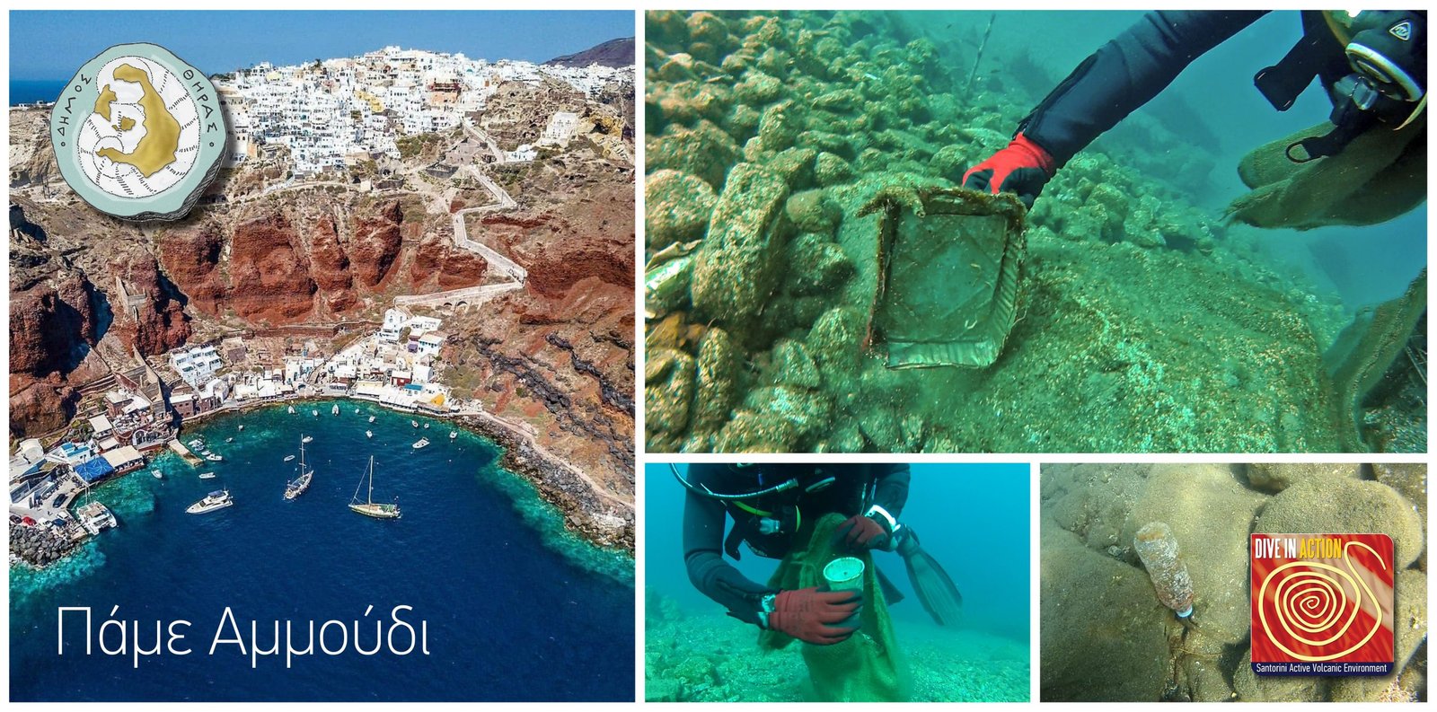 “Οι δράσεις για το 2021 στα πλαίσια της συνέχισης του προγράμματος Vivid Blue, της περιβαλλοντικής οργάνωσης Dive In Action, (Santorini Active Volcanic Environment) σε συνεργασία με το Δήμο Θήρας συνεχίζονται, με επιθεώρηση του βυθού στην ευρύτερη θαλάσσια περιοχή του Αμμουδίου και προσέγγιση της νησίδας περιμετρικά του Άγιου Νικόλαου για υποβρύχιο καθαρισμό το Σάββατο 15 Μαΐου.
