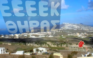 Καταγγέλλουμε στο θηραϊκό λαό αυτή τη διάκριση και απαιτούμε, ΟΛΑ τα παιδιά του ΕΕΕΕΚ, χωρίς καμιά εξαίρεση, να απολαμβάνουν το νόμιμο δικαίωμά τους για δωρεάν μεταφορά στο σχολείο τους.