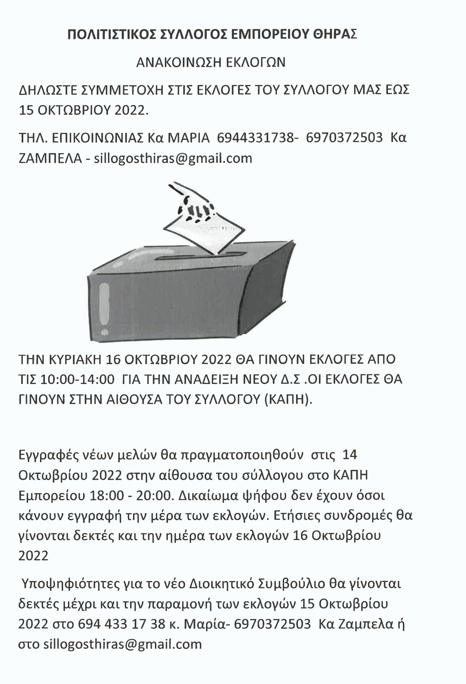 ΕΚΛΟΓΕΣ ΣΤΟΝ ΠΟΛΙΤΙΣΤΙΚΟ ΣΥΛΛΟΓΟ ΕΜΠΟΡΕΙΟΥ