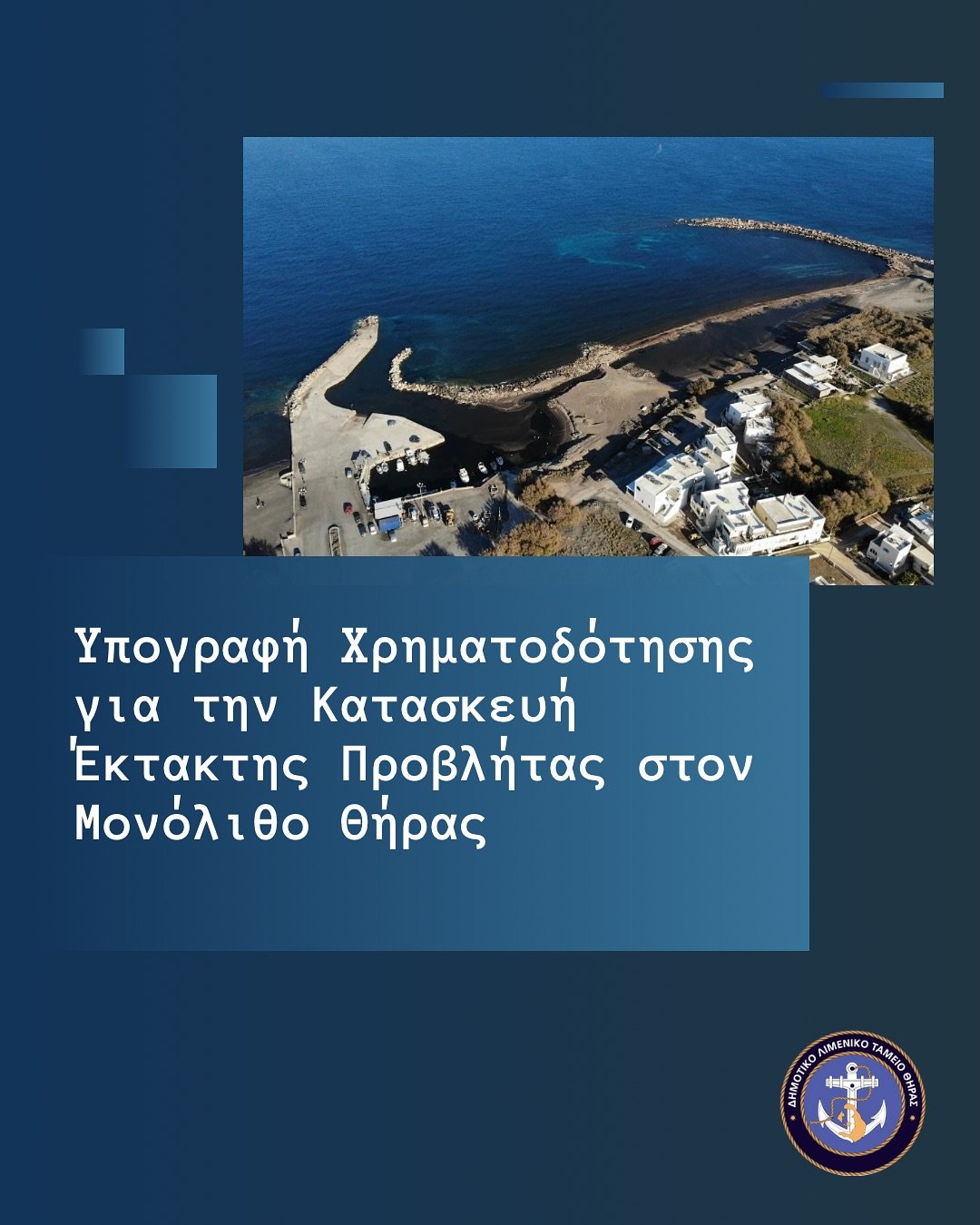 557410827 17983461026911295 3646787679275494032 n“Από τις 29-09-2025, εγκρίθηκε και η χρηματοδότηση του έργου: «Κατασκευή προβλήτας εξυπηρέτησης έκτακτης ανάγκης στον Μονόλιθο ν. Θήρας», από το Υπουργείο Ναυτιλίας και Νησιωτικής Πολιτικής, ποσού ύψους 1.900.000,00 ευρώ.
