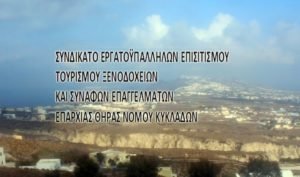 Ένα τέτοιο σωματείο έχει γίνει κι εδώ στη Σαντορίνη που εργάζονται κάθε σεζόν χιλιάδες εργαζόμενοι του κλάδου στα ξενοδοχεία, στα επισιτιστικά καταστήματα και στις τουριστικές επιχειρήσεις.