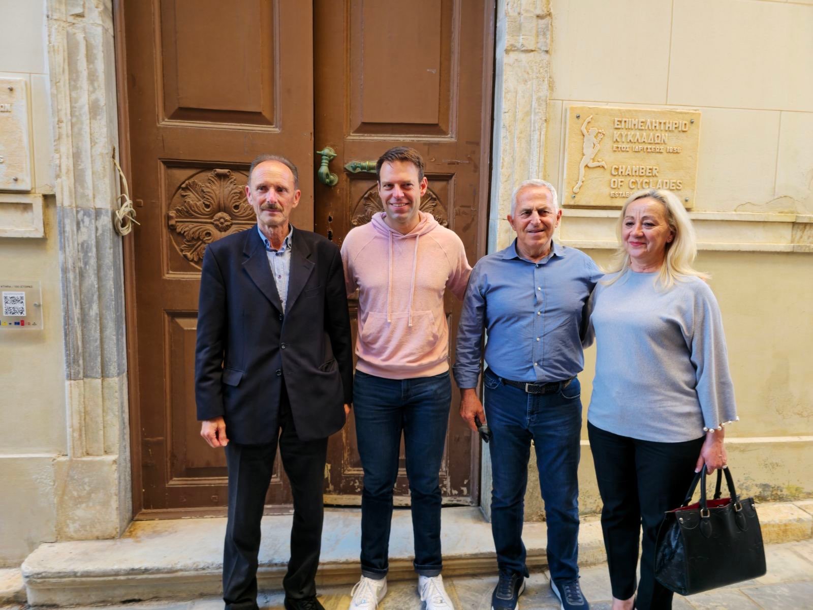 Τον κ. Κασσελάκη υποδέχτηκαν ο Πρόεδρος κ. Γιάννης Ρούσσος, μέλη του Διοικητικού Συμβουλίου καθώς και στελέχη του Επιμελητηρίου Κυκλάδων.