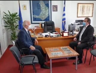 «Επίσκεψη του Δημάρχου Θήρας Αντώνη Σιγάλα στον νέο Αντιπεριφερειάρχη Υγείας Χαράλαμπο Δαρζέντα»