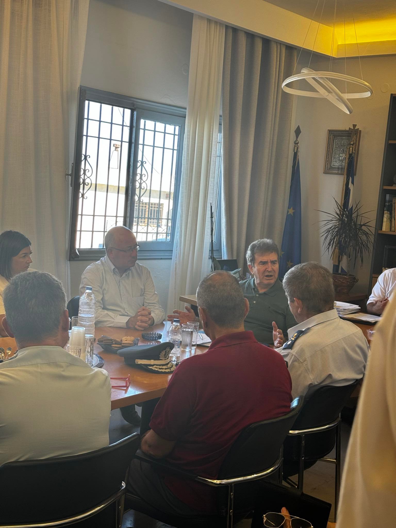 Στην σύσκεψη που ακολούθησε, τέθηκαν όλα τα θέματα που αφορούν την ασφάλεια του νησιού, της επάνδρωσης της υποδιεύθυνσης Θήρας, της διαμονής των αστυνομικών υπαλλήλων καθώς και των ενεργειών που πρέπει να αναληφθούν εκ μέρους του Υπουργείου για την ενίσχυση του αισθήματος ασφαλείας των δημοτών και των επισκεπτών.