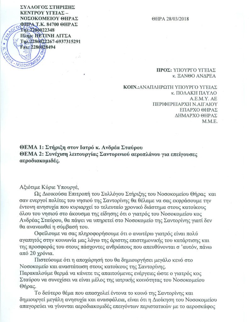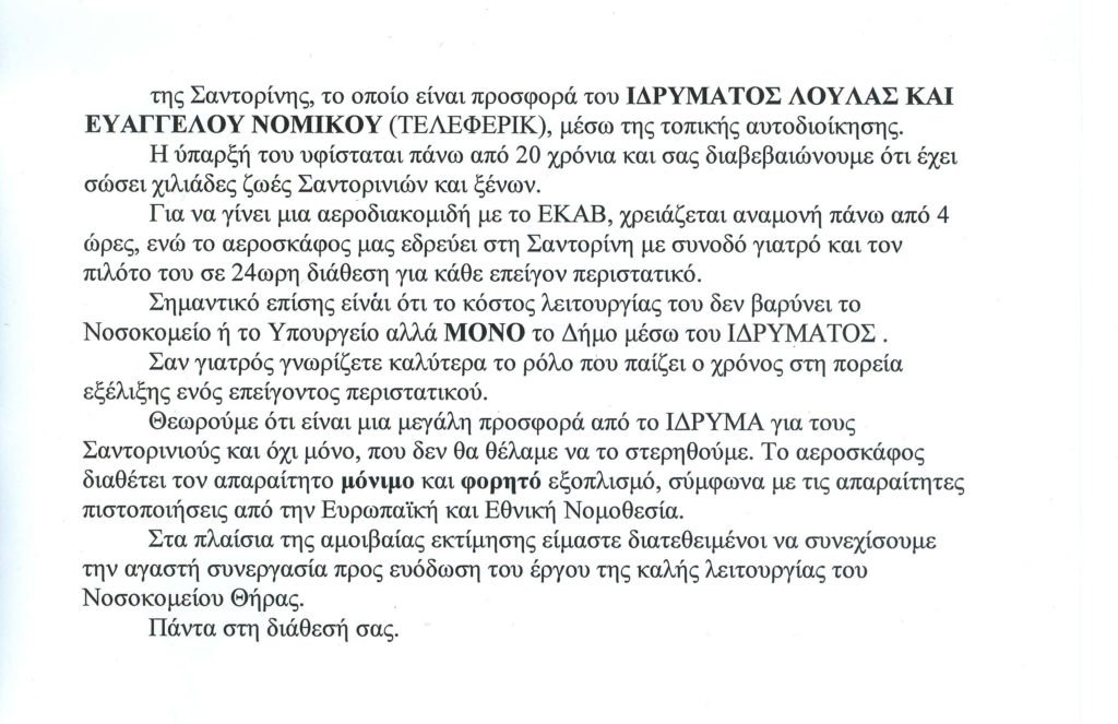 ΕΠΙΣΤΟΛΗ ΤΟΥ ΣΥΛΛΟΓΟΥ ΣΤΗΡΙΞΗΣ ΚΥ-ΝΟΣΟΚΟΜΕΙΟΥ