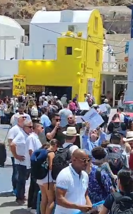 Παλιά (όχι τόσο)φωτογραφία αρχείου. Ξεχάστε τους διεθνείς όρους ΤΑΧI και BUS. Εδώ, είναι Σαντορίνη και ο ψωμωμένος, βαράει τον άταρο.