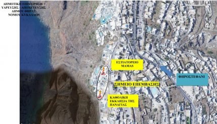 Η Δ.Ε.Υ.Α. Θήρας, λόγω της άμεσης αποκατάστασης του ρυμιδιού με τσιμεντοκονία κατόπιν απαραίτητων εργασιών στο δίκτυο αποχέτευσης, ανακοινώνει την απαγόρευση διέλευσης πεζών στην περιοχή της Καλντέρας του Φηροστεφανίου, και συγκεκριμένα απο το εστιατόρειο ΜΑMAS έως την Καθολικό Ιερό Ναό της Παναγίας.
