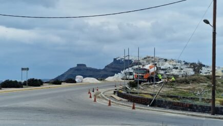“Στο πλαίσιο των έργων βελτίωσης της οδικής ασφάλειας στο Δήμο Θήρας ξεκίνησαν να πραγματοποιούνται κατασκευαστικές παρεμβάσεις στην οδό Φηρών- Πύργου.