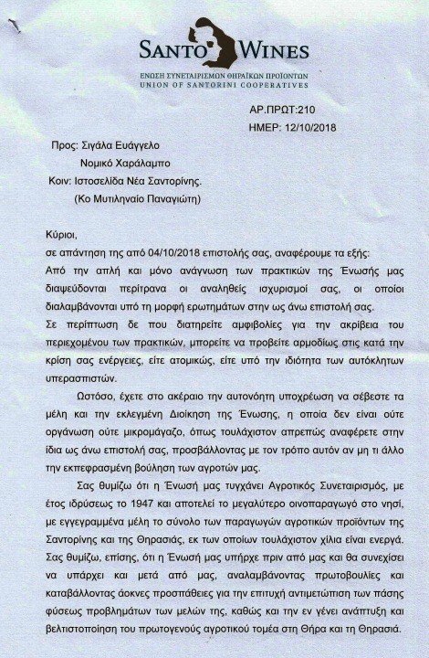 Παρ’ ότι δεν κοινοποιείται στη βδελυρή Santonews, η επιστολή, την έχω κι αυτήν. οπότε τη δημοσιεύω. Μέχρι να βρουν τα κότσια να απαντήσουν κάποιοι σωστά και τεκμηριωμένα. Εδώ σε έκθεση ιδεών της Τρίτης Λυκείου, θα βαθμολογούνταν κάτω από τη βάση.