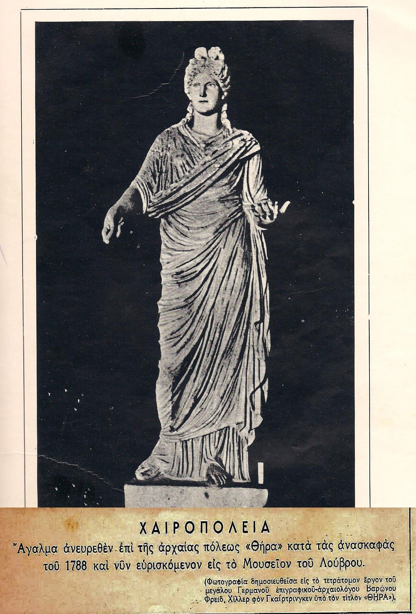 4. « Αρχαϊκός Πολιτισμός της νήσου Θήρας», Ανακοίνωσις γενομένη την 30 Σεπτεμβρίου 1897 εν τη εν Δρέσδη 44 Συνελεύσει Γερμανών φιλολόγων και παιδαγωγών» Hiller Von Gaertringen, Μετάφραση Ιερώνυμος Δελένδας , Θήρα 1898 «Τω Δήμω Καλλίστης Χαριστήριον».