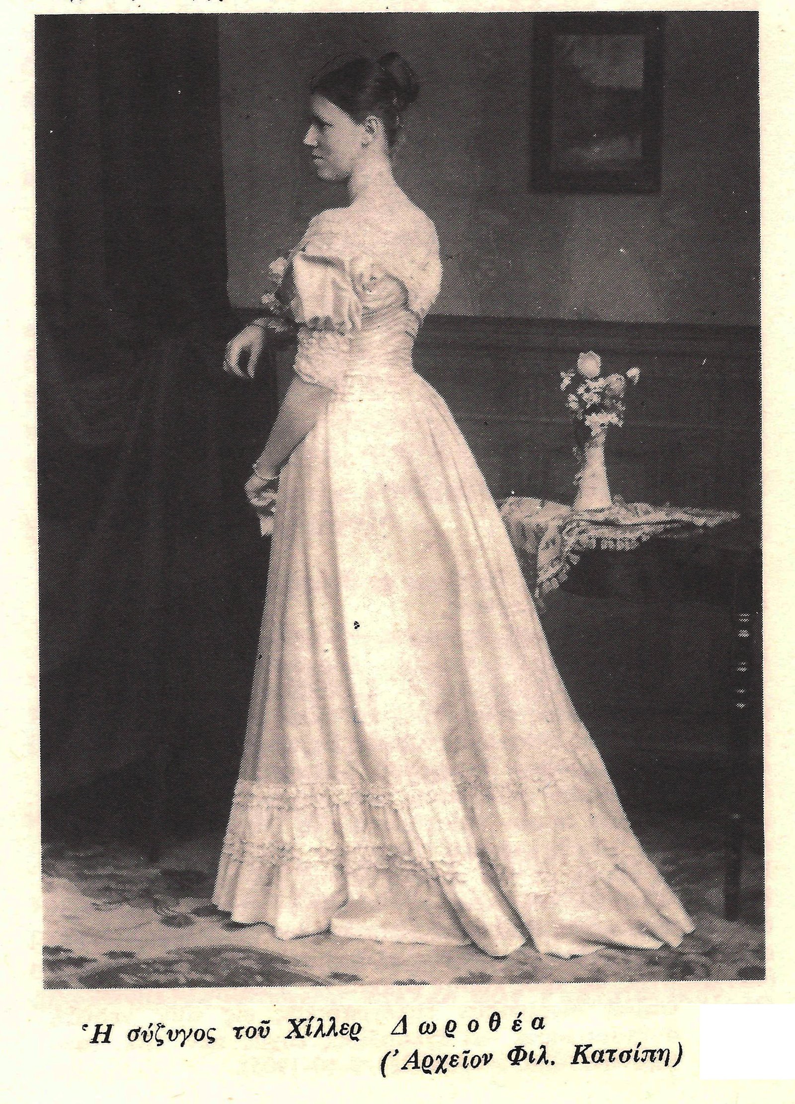 «Δύο υπάρξεις τρυφεράς και δι αμοιβαίων αισθημάτων εκτιμήσεως συνδεθεί τους τίτλω και ήθει ευγενείς των γραμμάτων δε και της επιστήμης λάτρας Βαρώνον Φον Χίλλερ και Δωροθέαν Βιλαμόβιτς ήνωσεν ο υμέναιος. Οι Θηραίοι δια τόσων δεσμών ακραιφνούς και αδόλου αγάπης συνδεόμενοι προς τον σοφόν επιστήμονα της Τευτονίας, επί τιμή συμπολίτη αυτών ευγενή Βαρώνον Χίλλερ εύχονται… Προς την αβράν δε και ευγενή κόρην του μεγάλου σοφού Γερμανού Ιερομάντου και την υπέροχον εν αρετή και παιδεία παρθένον της Τευτονίας, στρέφονται τα βλέμματα απάσης της κοινωνίας της Θήρας, πλήρη συμπαθείας και υιικής (sic) στοργής, ως προς κόρην Θηραίαν». ( Βιογραφικά του Χίλλερ- Lois K Nidleberger– Καθηγητής Πολυτεχνείου του Μονάχου. Συλλογικός Τόμος Σαντορίνη Μιχαήλ Δανέζη, Επιμέλεια Εμμανουήλ Λιγνού, Αθήνα 1971).