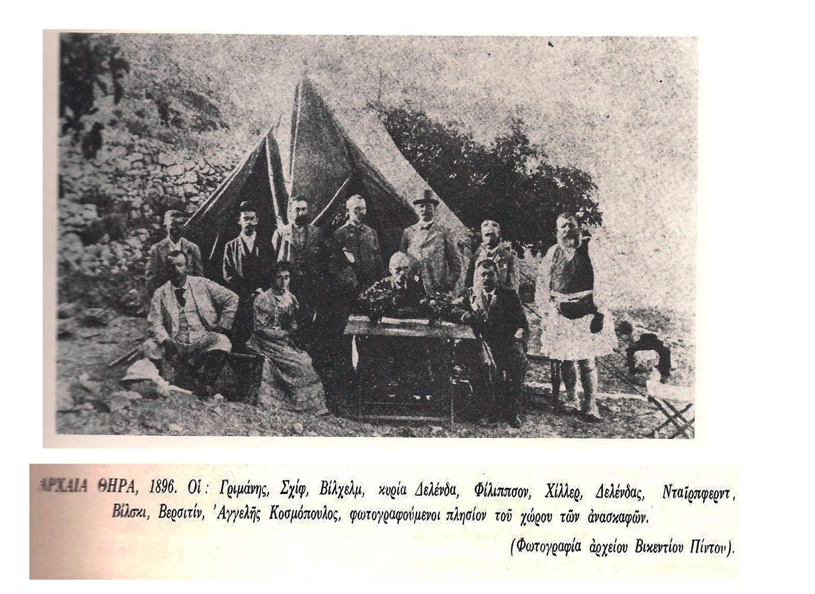 Στο εξώφυλλο του βιβλίου, αναφέρεται μεταξύ των συντελεστών και ο καλλιεργημένος τότε Σχολάρχης των Φηρών Εμμανουήλ Βασιλείου, που φαίνεται πως εκτός από τα τυπικά καθήκοντα του επόπτη της Ελληνικής πολιτείας, είχε ενθουσιασθεί με το συνολικό έργο. Η ανασκαφή όμως είχε συνεπάρει και την τοπική κοινωνία, με αποτέλεσμα κάθε Κυριακή, οι κάτοικοι του νησιού να συρρέουν στο χώρο, όπου ο Φον Γκέρτρινγκεν, τους ξεναγούσε στα αρχαία μνημεία. Αλλά και στην υπόλοιπη Ελλάδα, είχε γίνει ξακουστό το έργο του Βαρώνου και ένας από τους επιφανείς επισκέπτες, ήταν ο τέως Πρωθυπουργός (και αιώνιος αντίπαλος του Τρικούπη) Θεόδωρος Δηλιγιάννης που έκθαμβος από τα ευρήματα στη δωρική πόλη, αναφώνησε: «η Θήρα, υπήρξεν η θύρα του πολιτισμού».