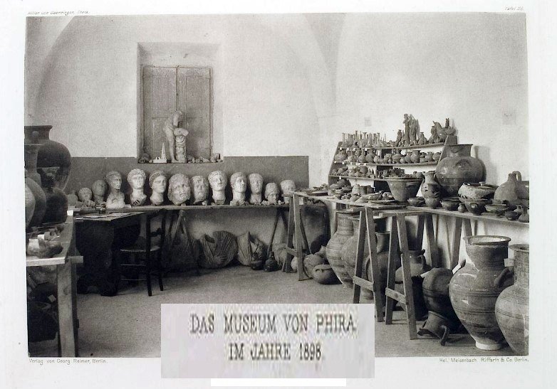 Το 1896 ο νεαρός φοιτητής της Νομικής και μετέπειτα πολιτευτής Πέτρος Μαρμαράς, με άρθρο του στην εφημερίδα «Σαντορίνη», μιλούσε για την ανάγκη δημιουργίας ενός Μουσείου. Τον ακολούθησε ο τότε Βουλευτής Βασίλειος Μαρκεζίνης, με άρθρο του στην εφημερίδα «Εστία» και η πρώτη ανταπόκριση ήρθε από το Βαρώνο που δήλωσε (στην ίδια εφημερίδα) πως ο ίδιος προσφέρει Χίλιες δραχμές για το έργο αυτό, καλώντας παράλληλα τους εύπορους Θηραίους να βοηθήσουν «τοιούτον φιλόπατρι και φιλόμουσον σχέδιον». Τότε- σύμφωνα πάντα με τον Κατσίπη- ξέσπασε έριδα μεταξύ των Δήμων Καλλίστης και Φηρών, για το που θα χτιζόταν το Μουσείο. Οι κάτοικοι του Πύργου μάλιστα, προθυμοποιήθηκαν να δώσουν και 500 δραχμές για να χτιστεί στο χωριό τους, καθώς θεωρούσαν ότι το Μέσα Βουνό, βρισκόταν στα γεωγραφικά όρια του δήμου τους.