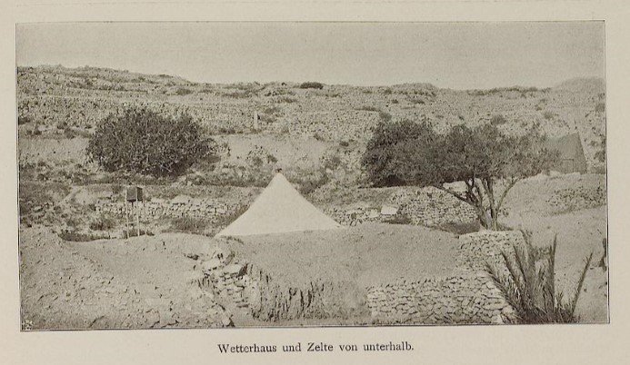 Η Αρχαία Θήρα, ήταν όμως δυσπρόσιτη και έτσι, επιστήμονες και εργάτες είχαν δημιουργήσει καταυλισμό κοντά στην εκκλησία του Ευαγγελισμού στο Μέσα Βουνό, ενώ μόλις συγκεντρωνόταν ικανός αριθμός ευρημάτων, μεταφέρονταν με τα μουλάρια στα Φηρά για να αποθηκευτούν σε κτίσμα τριών δωματίων που είχε παραχωρήσει ο τότε Δήμαρχος Ιωάννης Μοσχόχειλος. Τον Αύγουστο του 1896, ο Χίλλερ αποδέσμευσε τους Μεσαγωνιάτες εργάτες, προκειμένου να ασχοληθούν με τη Βεντέμα (τον τρύγο) και ο ίδιος αναχώρησε για τη Γερμανία.