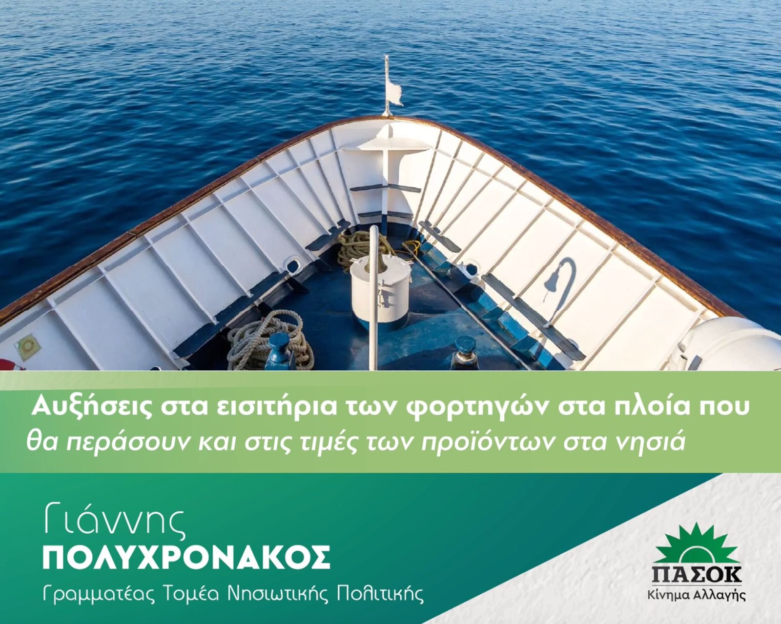 Ο Τομεάρχης Νησιωτικής Πολιτικής του ΠΑΣΟΚ κ.Γιάννης Πολυχρονάκος έκανε την ακόλουθη δήλωση: