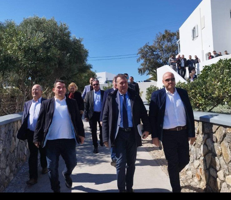 Παρουσία του βουλευτή Κυκλάδων Μάρκου Καφούρου, των δημάρχων της Σαντορίνης και της Φολεγάνδρου, εκπροσώπων των αθλητικών σωματείων, αθλητών και πολιτών της Σαντορίνης, ο υπουργός παρουσίασε τα σχέδια που προωθεί μετά την ανάθεση των καθηκόντων του από τον Πρωθυπουργό.