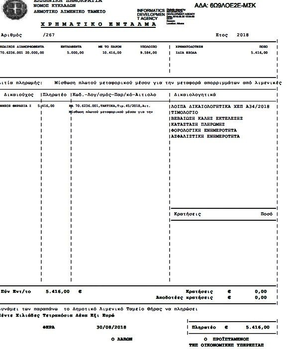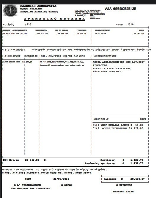 6ΘΕΘΟΕ2Ε-Ι2Ε.pdf. Δεν είναι κορακίστικα, θα τα δείτε στον κήπο. (Διαύγεια)Ο παραιτηθείς Πρόεδρος, υπογράφει ένταλμα πληρωμής 20.000 ευρώ. Δείτε, κάτωθι. Πριν γίνει το Δημοτικό Συμβούλιο για να ανακοινώσει (έχω το βίντεο κύριε Δήμαρχε) ο Δήμαρχος τις αποφάσεις του για το “συμβάν” (και η δολοφονία του Κένεντι συμβάν ήταν). Και δεν θα ρωτήσω όπως έκανε ο επαίσχυντος Χάλαρης αν είναι νόμιμο ο εντολέας, να υπογράφει κιόλας τις δαπάνες αντί του προϊσταμένου της οικονομικής υπηρεσίας. Είναι ψιλά ή ψηλά γράμματα για μένα και δεν τα ξέρω.