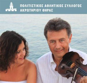 “Ο Πολιτιστικός & Αθλητικός Σύλλογος Ακρωτηρίου Θήρας στο νέο του ξεκίνημα στα Πολιτιστικά δρώμενα του νησιού σας προσκαλεί σε ένα Παραδοσιακό γλέντι με τον μοναδικό Νίκο Οικονομίδη και Κυριακή Σπανού την Παρασκευή 28 Ιουλίου 2017 και Ώρα 21:00 μμ στον Προαύλιο χώρο της Παναγίας Κοίμησης στο Φάρο.
