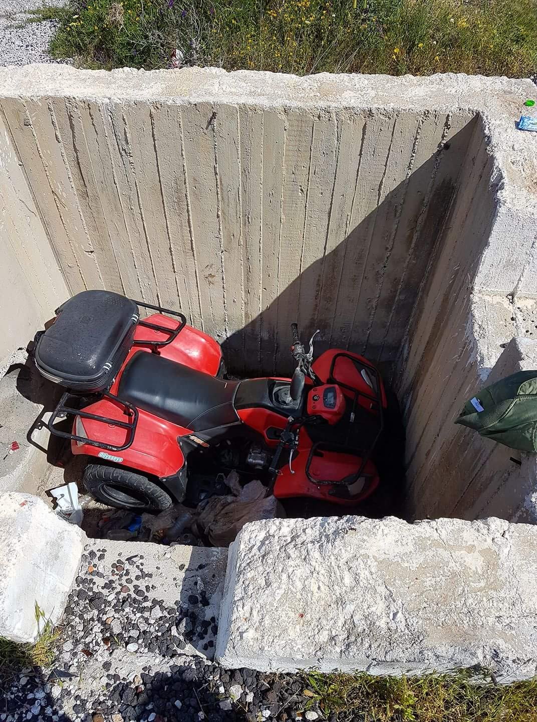 Ο φίλος που έστειλε τη φωτογραφία, υποδεικνύει και τη διαδρομή της γουρούνας. Στην αρχή το θεώρησα υπερβολικό. Μετά όμως θυμήθηκα το … γαλαξιακό παρκάρισμα γουρούνας πριν λίγο καιρό (φωτογραφία και λινκ), οπότε τίποτα δεν θεωρείται πλέον απίθανο. Είναι στο στυλ: “ εκεί που οδηγούσα αμέριμνος,…. τσααακ….τελείωσε ο δρόμος. Παλιοέλληνες!.”.