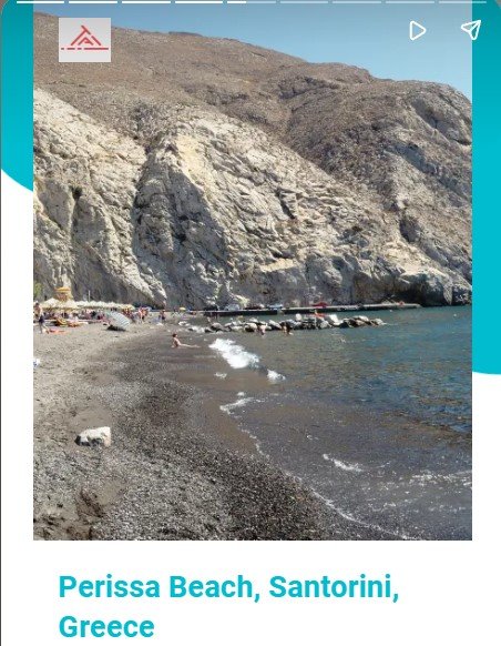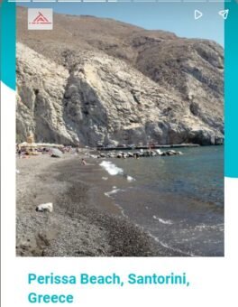 Για την Περίσσα, γράφει: “Η Σαντορίνη προσφέρει ένα μοναδικό μείγμα φυσικής ομορφιάς και εκπληκτικής αρχιτεκτονικής με εντυπωσιακές παραλίες με μαύρη άμμο με φόντο τα λευκά βαμμένα σπίτια.