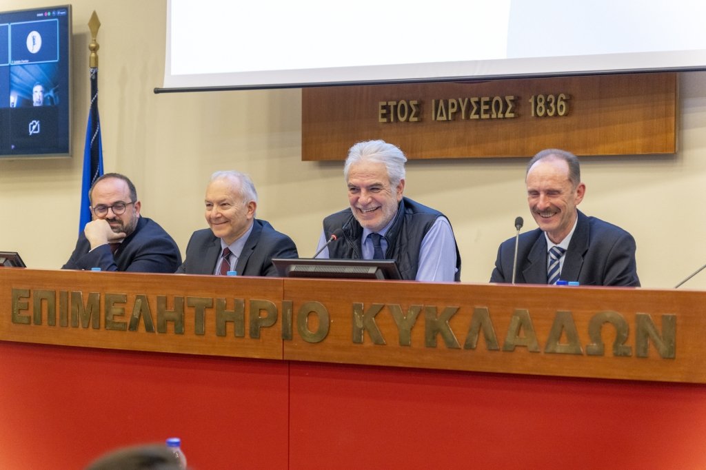 Στην πιο σημαντική στιγμή για τη νέα Διοίκηση του Επιμελητηρίου Κυκλάδων, την πρώτη διευρυμένη συνάντηση του νέου Διοικητικού του Συμβουλίου, με τη συμμετοχή όχι μόνο των νεοεκλεγέντων μελών αλλά και μεγάλου αριθμού συνεργατών που ταξίδεψαν από όλα τα νησιά των Κυκλάδων στο κέντρο διοίκησης του Επιμελητηρίου, καθώς και των στελεχών του Επιμελητηρίου, προσκλήθηκαν και έλαβαν μέρος στις συναντήσεις εργασίας ο Υπουργός Ναυτιλίας και Νησιωτικής Πολιτικής κ. Χρήστος Στυλιανίδης, ο Υφυπουργός κ. Στέφανος Γκίκας, ο Γενικός Γραμματέας Αιγαίου και Νησιωτικής Πολιτικής κ. Μανώλης Κουτουλάκης, καθώς και στελέχη του Υπουργείου.