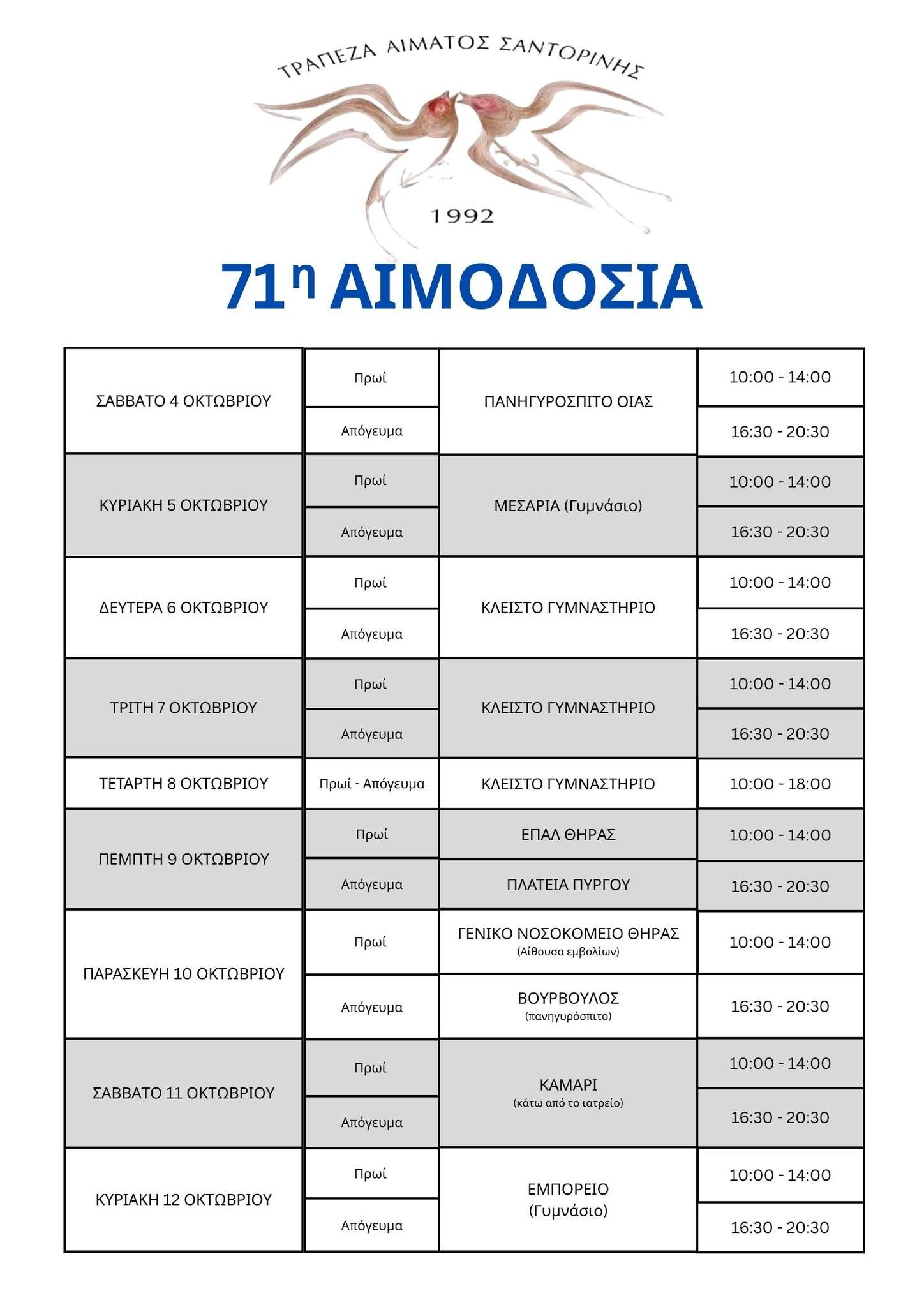 Η αιμοδοσία Αριθμός 71, συνεχίζει