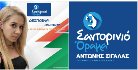 Συμμετέχοντας για πρώτη φορά σε εκλογική διαδικασία, εντάσσεται με θέρμη και αποφασιστικότητα στο συνδυασμό μας “Σαντορινιό Όραμα” και θ’ αγωνιστεί για την επιτυχία του και τη νίκη της Σαντορίνης.
