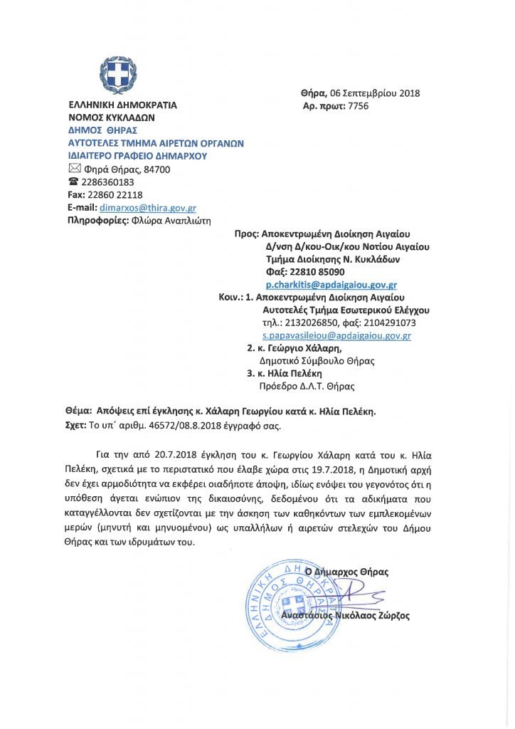 Α. Πως ο τραμπουκισμός του κυρ-Ηλία, στον εργασιακό μου χώρο δεν αφορούσε….πως το λέει ο Δήμαρχος,, κάτσε να δεις…: “…τα αδικήματα που καταγγέλλονται δεν σχετίζονται με την άσκηση των καθηκόντων των εμπλεκομένων μερών (μηνυτή και μηνυομένου) ως υπαλλήλων ή αιρετών στελεχών του Δήμου Θήρας και των ιδρυμάτων του”.