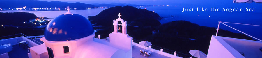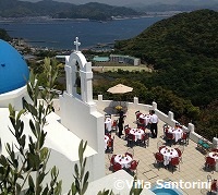 Χαρακτηρίστηκε μάλιστα ως το «πιο εκκεντρικό Ξενοδοχείο της Ιαπωνίας», καθώς τίποτα σε αυτό δεν θυμίζει Ιαπωνία. Ο ιδιοκτήτης του, γοητευμένος, από ένα ταξίδι του στην αυθεντική Σαντορίνη, αποφάσισε να δημιουργήσει ένα πιστό αντίγραφο στην πατρίδα του. Όχι μερικούς λευκούς τοίχους ή κάνα δύο τρούλους, όπως έχουν κάνει σε κάποια αραβικά Εμιράτα, αλλά ένα μικρό οικισμό. Τα δωμάτιά του (οι τιμές ξεκινούν από 12.000 γεν, περίπου 90 ευρώ) όλα με τυπική κυκλαδίτικη επίπλωση, οι τοίχοι κάτασπροι, ενώ ακόμα και η θέα στον κόλπο, μοιάζει λίγο με τη Σαντορίνη, αλλά την «προδίδουν» οι καταπράσινοι λόφοι.