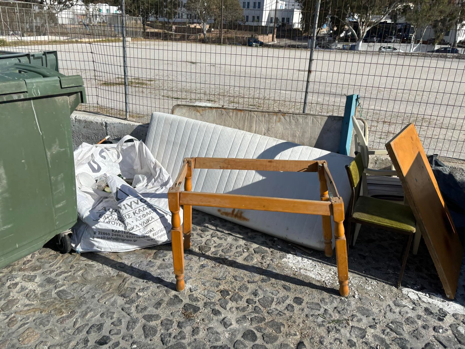Απελπισμένος εργαζόμενος, πήρε τη ντουλάπα, το κομοδίνο και την καρέκλα του και εγκαταστάθηκε δίπλα στο γήπεδο μπάσκετ της Μεσαριάς. Μόνο πρόβλημά του, είναι ο ανεπαρκής δημόσιος φωτισμός, που τον εμποδίζει να διαβάζει Άρλεκιν μέχρι να τον πάρει ο ύπνος.