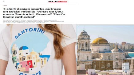 “Ο καθεδρικός ναός του Cádiz βρίσκεται τώρα στη Σαντορίνη της Ελλάδας: το “μεγάλο χτύπημα” σε ένα μπλουζάκι της μάρκας Springfield”, αναφέρει με τη σειρά της η elconfidencial