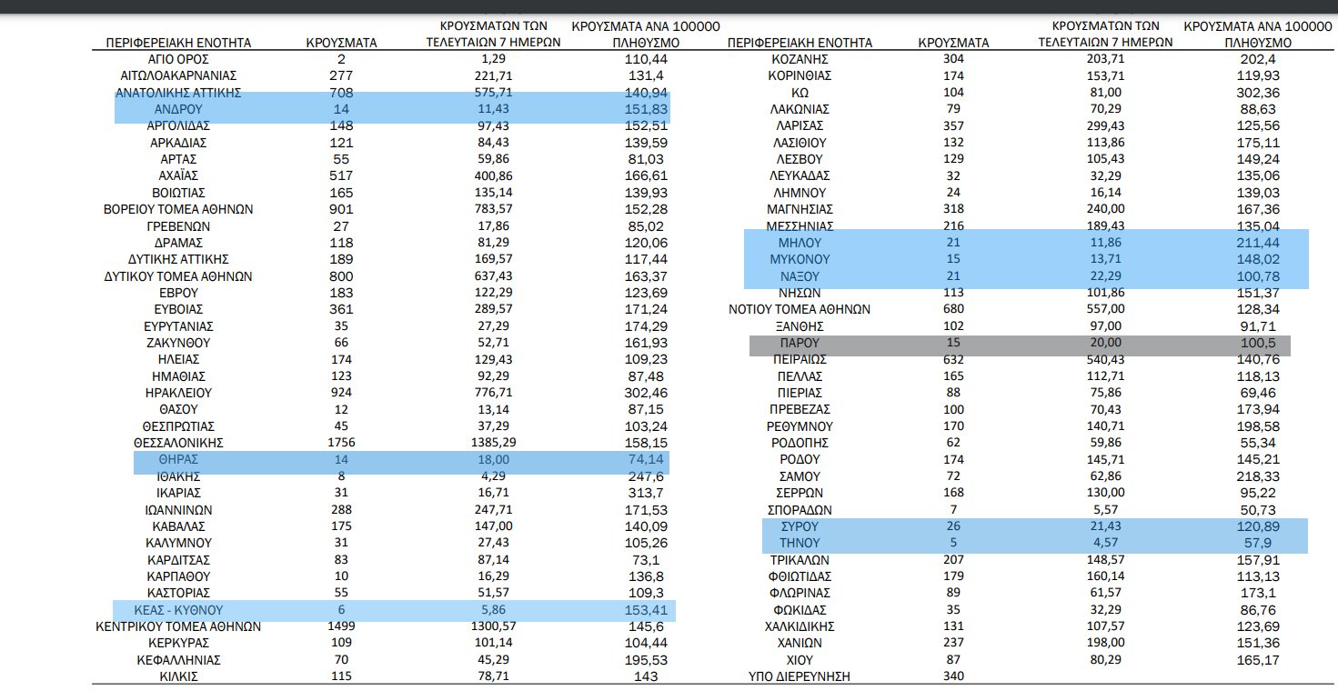 1 Με βάση τα επιβεβαιωμένα κρούσματα των τελευταίων 7 ημερών, 255