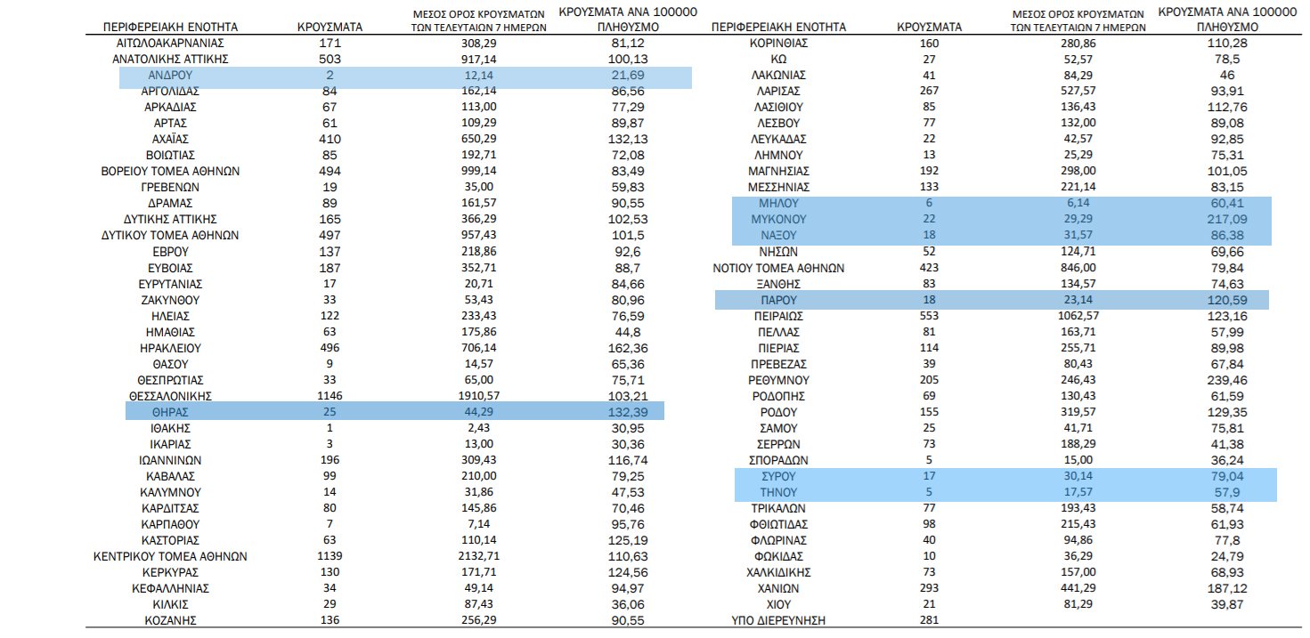 Η ΚΑΤΑΣΤΑΣΗ ΣΤΑ ΥΠΟΛΟΙΠΑ ΚΥΚΛΑΔΟΝΗΣΙΑ