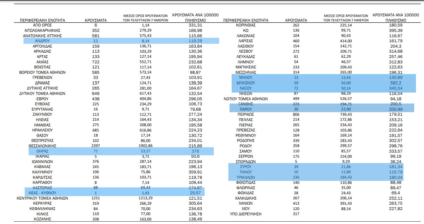 ΚΟΡΩΝΟΪΟΣ: 71 ΔΙΑΓΝΩΣΕΙΣ ΣΤΗΝ Π.Ε ΘΗΡΑΣ-ΨΗΛΑ ΝΑΞΟΣ, ΜΥΚΟΝΟΣ