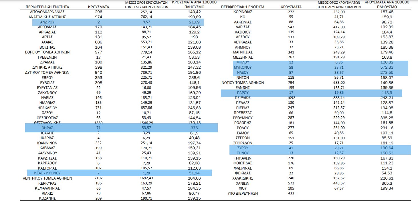 1 Με βάση τα επιβεβαιωμένα κρούσματα των τελευταίων 7 ημερών, 430